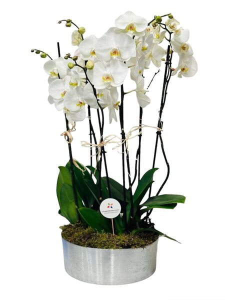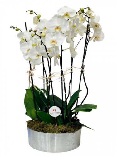 Puantiyeli Saksıda Orkide ve Papatya Aranjman