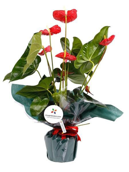 Antoryum saksı çiçeği usta eller tarafından güzelce süslenmiştir.