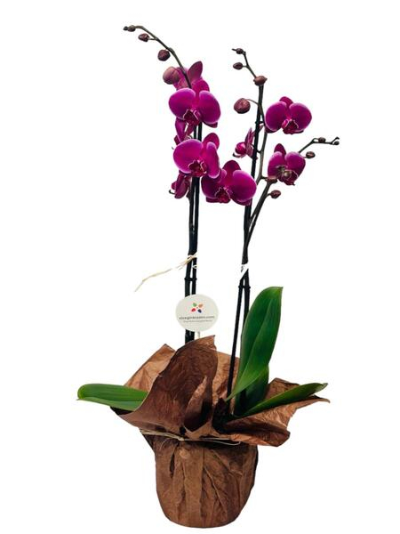 Çift dal mor orkide çiçeği kahverengi kağıt ile süslenmiştir.