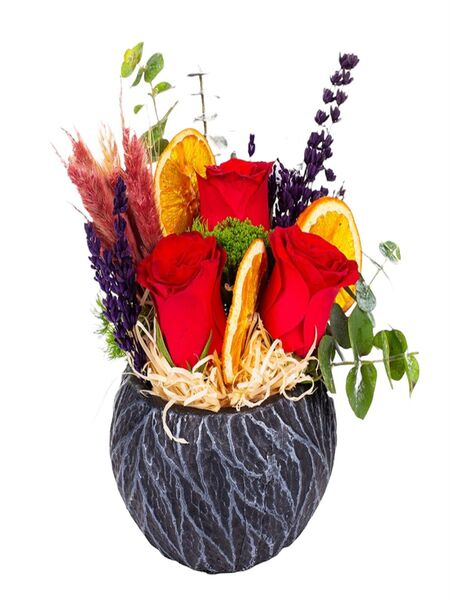 Kanatlı Kutuda Turuncu Güller ve Kokinalar