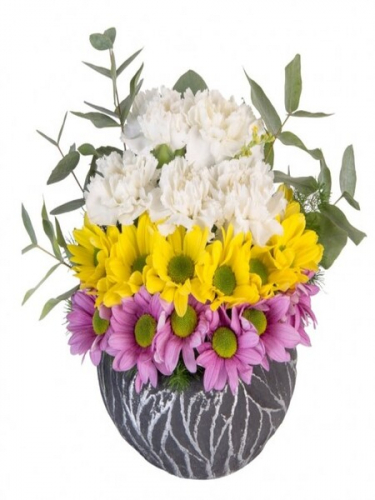Desenli Saksıda Karanfil ve Papatyalar