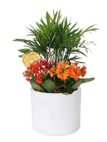 Puantiyeli Saksıda Orkide ve Papatya Aranjman