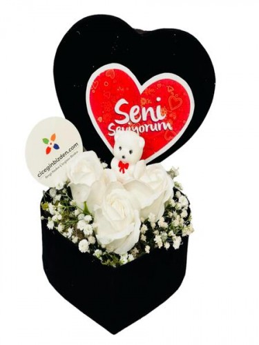Kalp Kutuda Beyaz Güller ve Çikolata