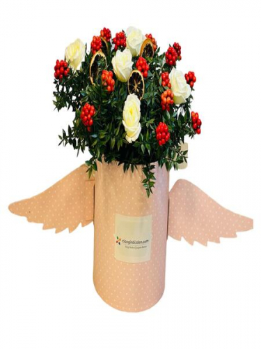 Kanatlı Kutuda Beyaz Güller ve Kokinalar