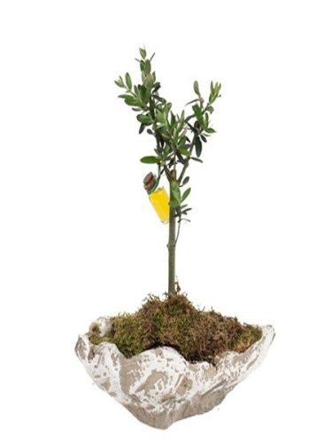 Kayık saksı içerisine dikilmiş zeytin ağacı