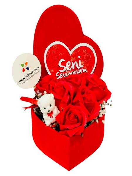 Kırmızı Kalpli Kutuda Kırmızı Güller