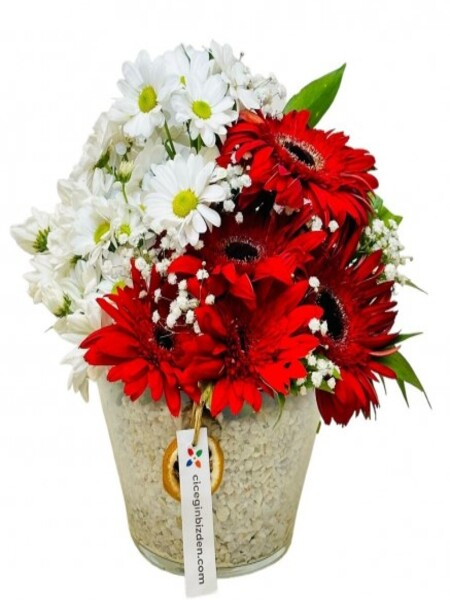 Konikte Beyaz Papatyalar ve Kırmızı Gerberalar
