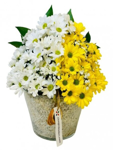 Konikte Beyaz Papatyalar ve Sarı Gerberalar