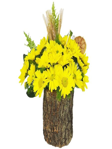 Kütükte Papatya ve Hüsnüyusuf Çiçekleri