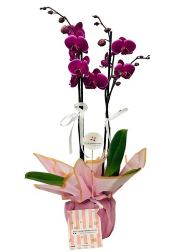 Çift dal mor orkide çiçeği pembe kağıt ile süslenmiştir.