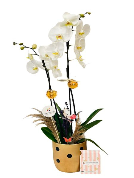 Puantiyeli Saksıda Beyaz Orkide