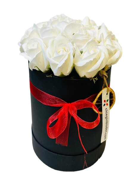 Kırmızı Kalpli Kutuda Beyaz Güller