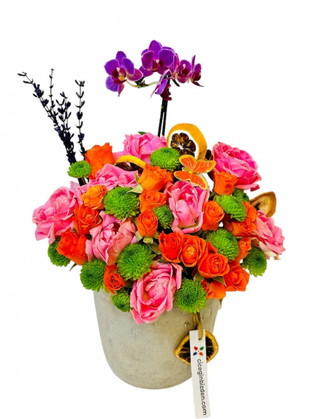 Beton Saksıda Orkide ve Güller