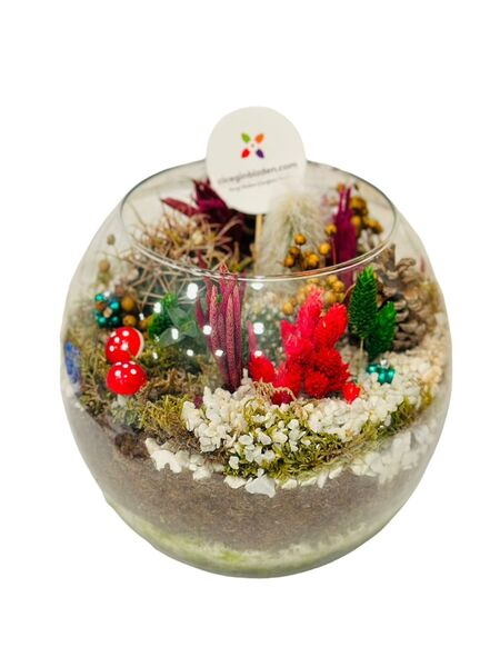 Cam fanus içerisine dizayn edilmiş şahane bir teraryum.