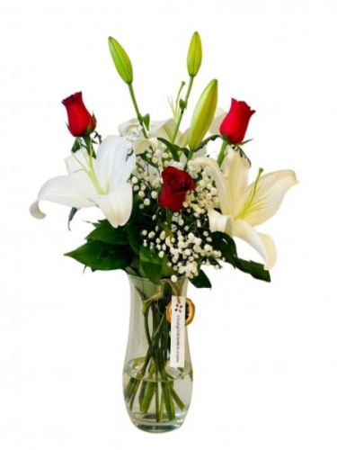 Vazoda Lilyum ve 3 Kırmızı Gül