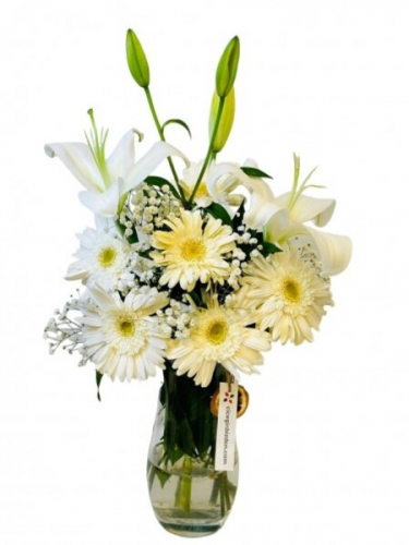 Vazoda Lilyum ve Beyaz Gerberalar