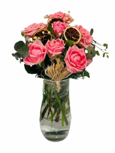 Pembe Gül : 7 adet ( Stoğa göre renkte açıklık koyuluk,gülün goncalığı farkındalık gösterilebilir.)