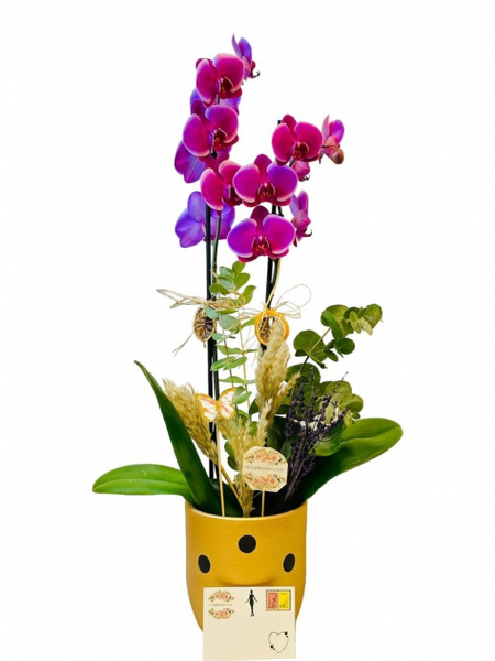 Puantiyeli Vazoda Mor Orkide
